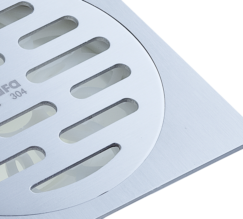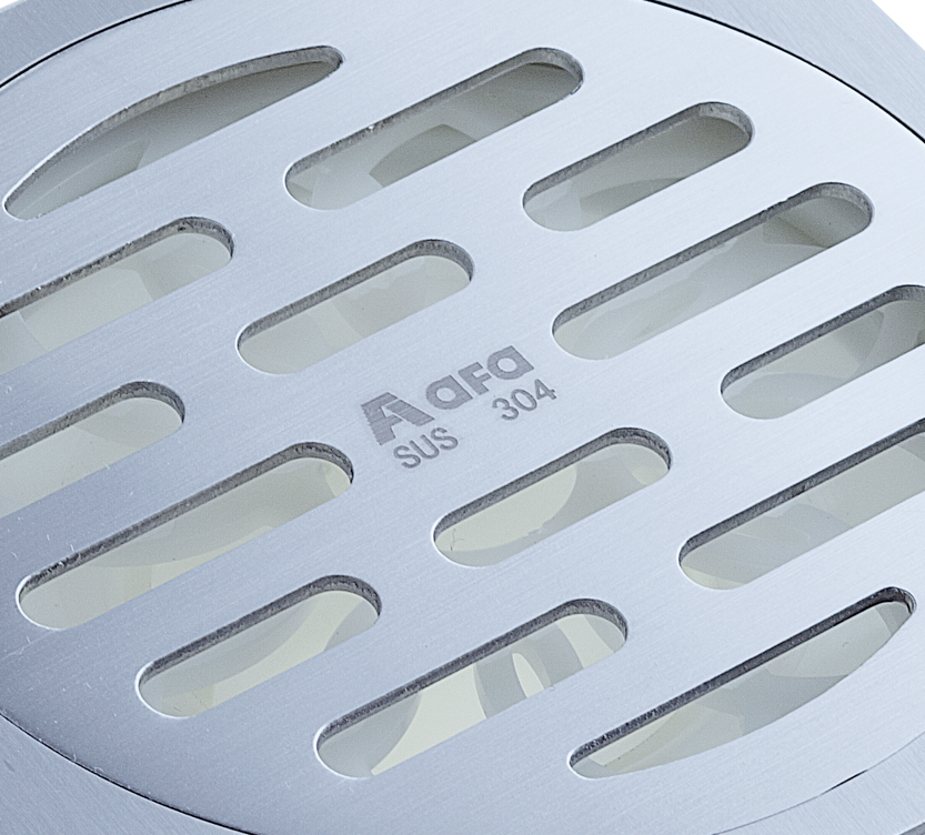 阿發地漏表面經純手工拉絲處理,質感十足,強韌有型;亞光處理,光澤柔和,氣質高雅,更能避免鏡面材質反射的光污染