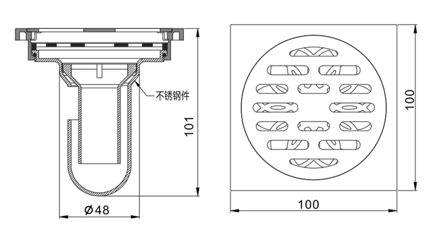 不銹鋼地漏內部設計專用拆洗開關,操作簡單,輕巧靈活,可重復拆洗,以防地漏污濁或堵塞,清潔方便