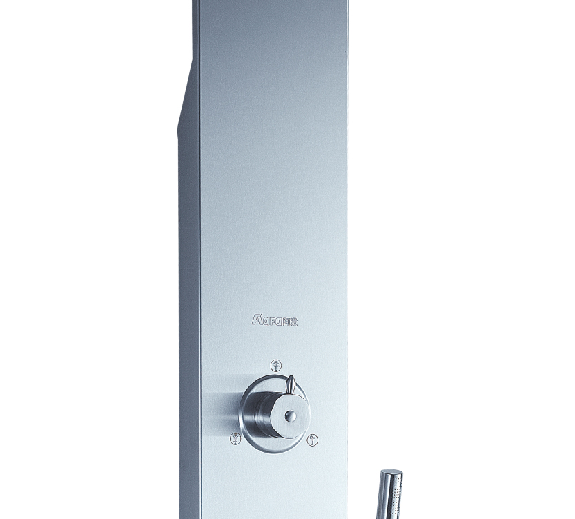 沐浴柱由不銹鋼整體壓鑄成型,簡潔時尚、結實耐用。上下呼應的斜角設計,讓您的浴室更具美感,又避免了金屬銳角對人體的意外碰撞,,彰顯人性關懷。