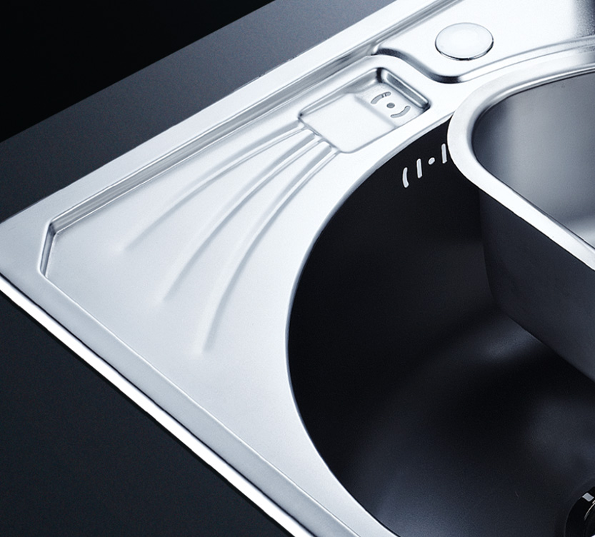 阿發(fā)水槽立邊采用國際先進的10-25°小R角一次成型拉伸技術(shù),更具立體感與時尚潮流,亦能充分擴展水槽利用空間;一次成型拉伸技術(shù),杜絕了焊接工藝易產(chǎn)生的水槽生銹,脫焊事故,充分保障水槽50年以上的使用壽命