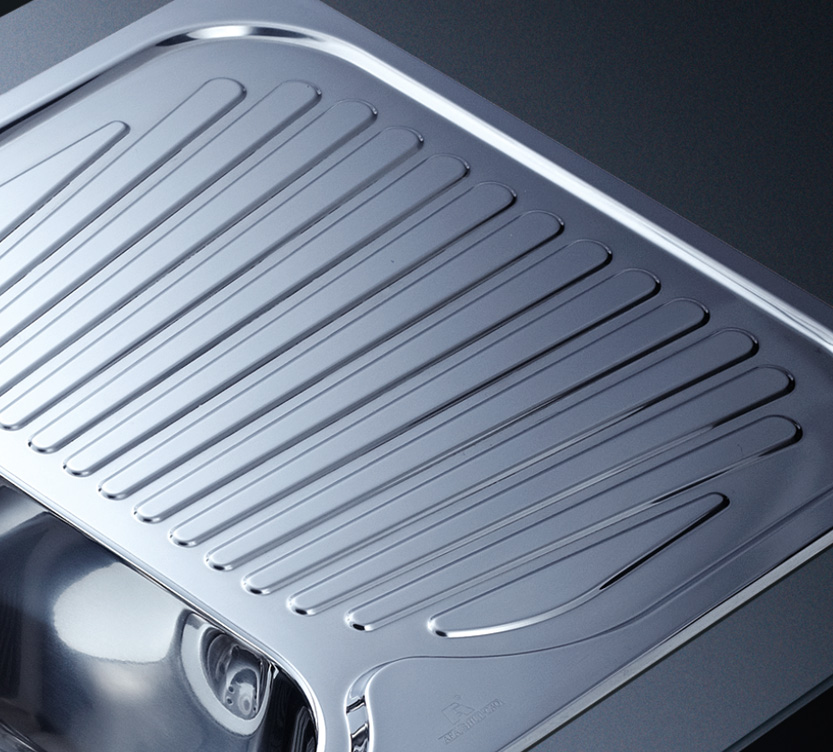 阿發(fā)水槽立邊采用國際先進的10-25°小R角一次成型拉伸技術(shù),更具立體感與時尚潮流,亦能充分擴展水槽利用空間;一次成型拉伸技術(shù),杜絕了焊接工藝易產(chǎn)生的水槽生銹,脫焊事故,充分保障水槽50年以上的使用壽命