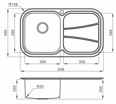 槽底采用斜面壓痕,四輻導(dǎo)流槽設(shè)計(jì),與平面壓痕和無痕水槽相比,導(dǎo)水更為流暢,下水更迅速,能有效防止積水,消除沉淀物