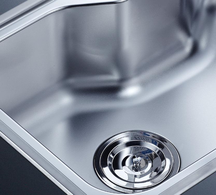 阿發水槽整體經拉絲處理,質地更加光滑,視覺更加柔和。能有效抵擋異物撞擊,刮傷及磨損,防止油污沾染,常用常新;柔和的光澤令水槽平添高雅氣質,更能避免鏡面材質反射的光污染