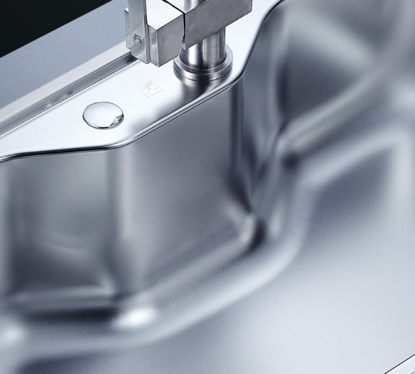 阿發水槽立邊采用國際先進的10-25°小R角一次成型拉伸技術,更具立體感與時尚潮流,亦能充分擴展水槽利用空間;一次成型拉伸技術,杜絕了焊接工藝易產生的水槽生銹,脫焊事故,充分保障水槽50年以上的使用壽命