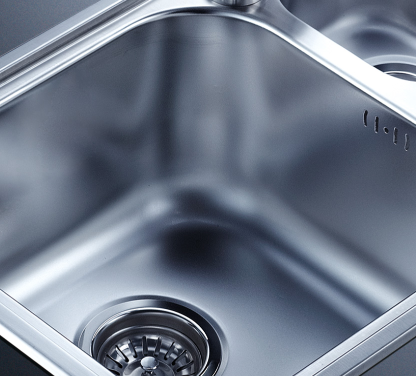 水槽四邊條采用一次成型的折彎加強筋工藝,雙倍堅固,承重力更強,解決了普通焊接工藝容易出現的凹點、脫焊、易割手等問題。專業配置的密封條和固定夾,安裝平整度高,不滲水,不松動