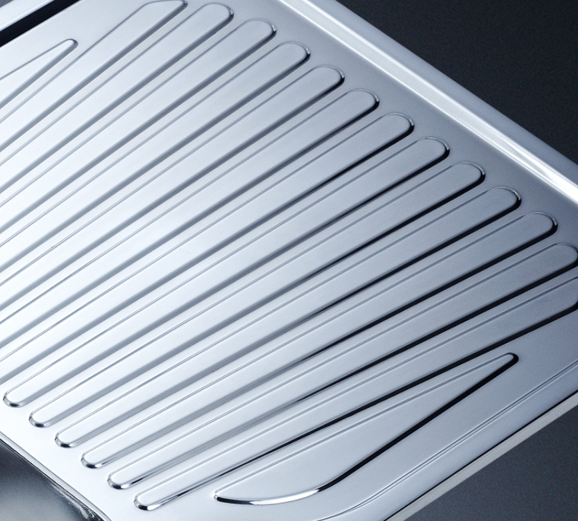 阿發(fā)水槽立邊采用國際先進(jìn)的10-25°小R角一次成型拉伸技術(shù),更具立體感與時尚潮流,亦能充分?jǐn)U展水槽利用空間;一次成型拉伸技術(shù),杜絕了焊接工藝易產(chǎn)生的水槽生銹,脫焊事故,充分保障水槽50年以上的使用壽命