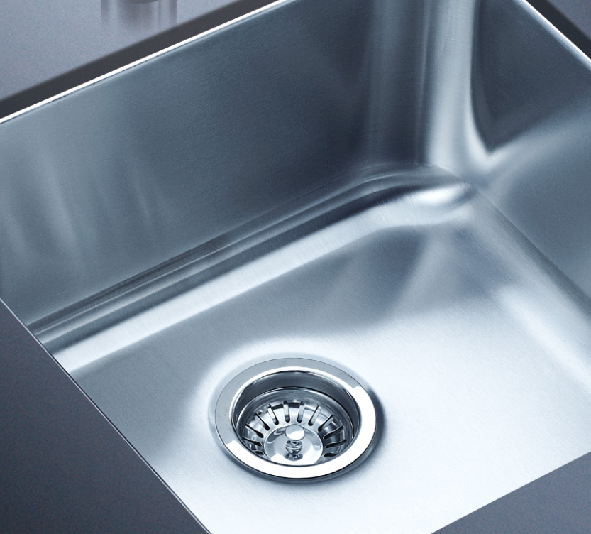 阿發水槽整體經拉絲處理,質地更加光滑,視覺更加柔和。能有效抵擋異物撞擊,刮傷及磨損,防止油污沾染,常用常新;柔和的光澤令水槽平添高雅氣質,更能避免鏡面材質反射的光污染