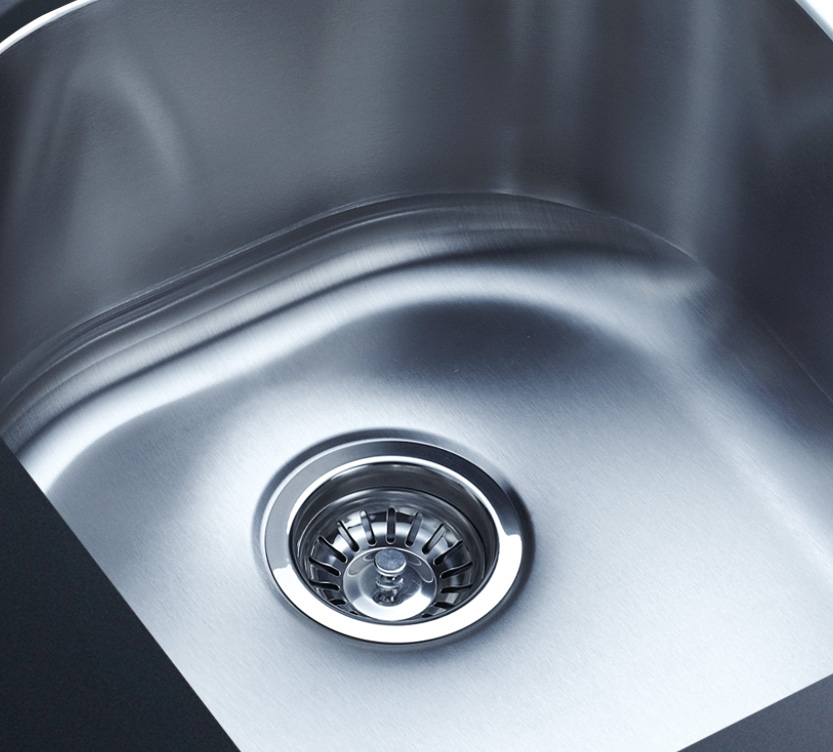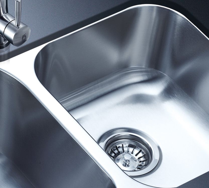 阿發水槽整體經拉絲處理,質地更加光滑,視覺更加柔和。能有效抵擋異物撞擊,刮傷及磨損,防止油污沾染,常用常新;柔和的光澤令水槽平添高雅氣質,更能避免鏡面材質反射的光污染