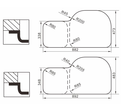 水槽四邊條采用一次成型的折彎加強筋工藝,雙倍堅固,承重力更強,解決了普通焊接工藝容易出現的凹點、脫焊、易割手等問題。專業配置的密封條和固定夾,安裝平整度高,不滲水,不松動