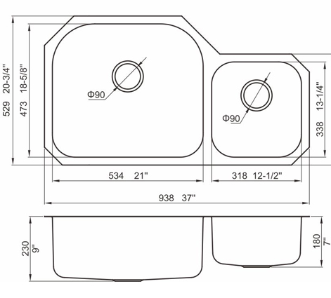 槽底采用斜面壓痕,四輻導流槽設計,與平面壓痕和無痕水槽相比,導水更為流暢,下水更迅速,能有效防止積水,消除沉淀物