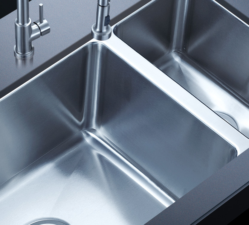 水槽四邊條采用一次成型的折彎加強筋工藝,雙倍堅固,承重力更強,解決了普通焊接工藝容易出現的凹點、脫焊、易割手等問題。專業配置的密封條和固定夾,安裝平整度高,不滲水,不松動
