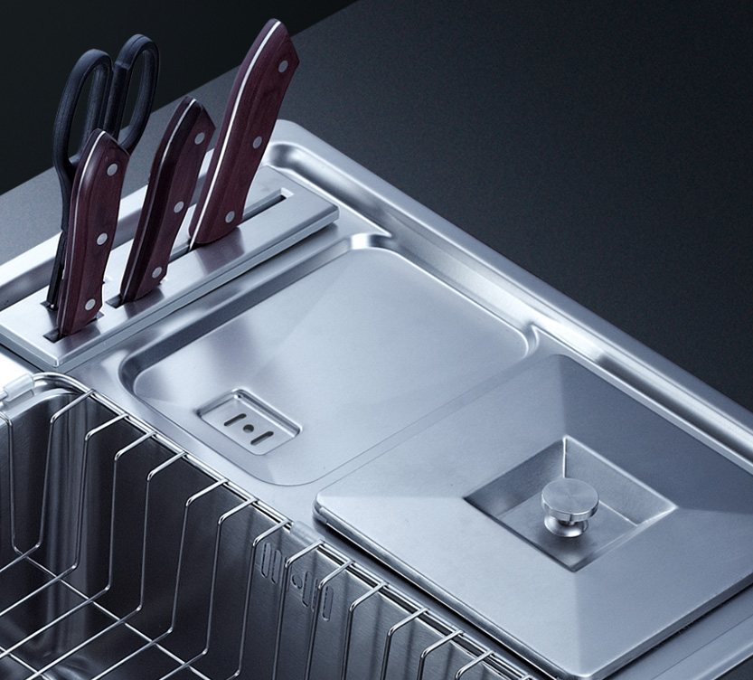 完美的水槽加固設(shè)計(jì),有效防止溢水,水槽槽體一次成形的凹型設(shè)計(jì),免除流水滲漏損壞櫥柜,完美凹型水槽,打造優(yōu)雅廚房