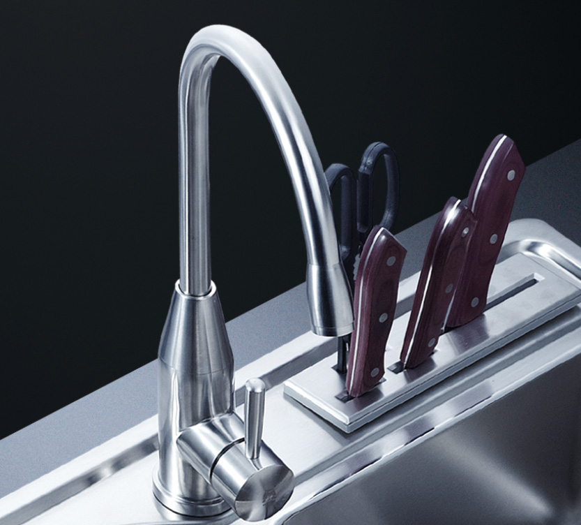 水槽四邊條采用一次成型的折彎加強筋工藝,雙倍堅固,承重力更強,解決了普通焊接工藝容易出現的凹點、脫焊、易割手等問題。專業配置的密封條和固定夾,安裝平整度高,不滲水,不松動