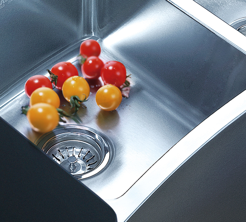 阿發(fā)水槽整體經(jīng)拉絲處理,質地更加光滑,視覺更加柔和。能有效抵擋異物撞擊,刮傷及磨損,防止油污沾染,常用常新;柔和的光澤令水槽平添高雅氣質,更能避免鏡面材質反射的光污染