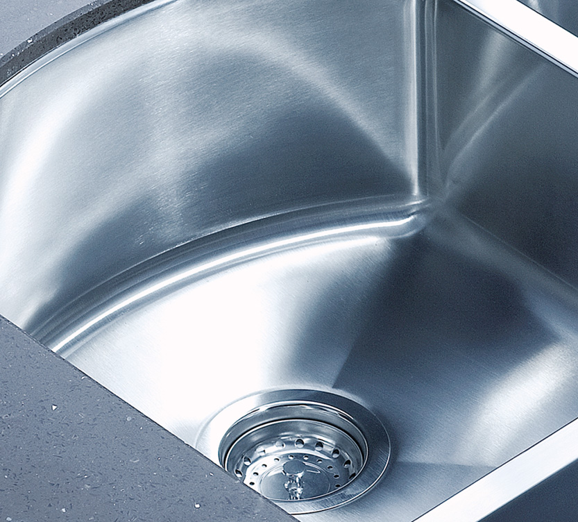 阿發水槽整體經拉絲處理,質地更加光滑,視覺更加柔和。能有效抵擋異物撞擊,刮傷及磨損,防止油污沾染,常用常新;柔和的光澤令水槽平添高雅氣質,更能避免鏡面材質反射的光污染