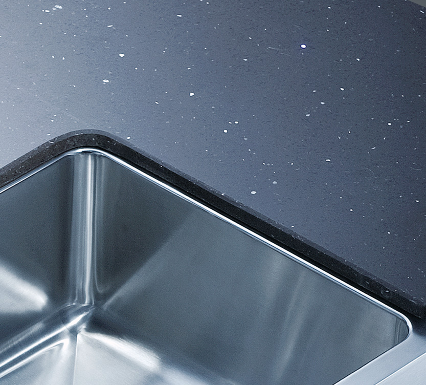 水槽四邊條采用一次成型的折彎加強筋工藝,雙倍堅固,承重力更強,解決了普通焊接工藝容易出現的凹點、脫焊、易割手等問題。專業配置的密封條和固定夾,安裝平整度高,不滲水,不松動