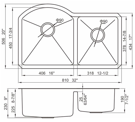 槽底采用斜面壓痕,四輻導流槽設計,與平面壓痕和無痕水槽相比,導水更為流暢,下水更迅速,能有效防止積水,消除沉淀物